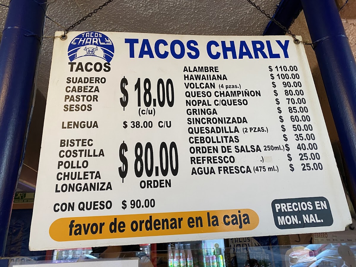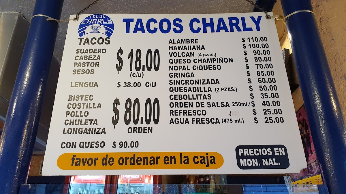 Welcome to Tacos Charly, a hidden gem nestled in Tlalpan, Mexico City, where authentic Mexican street food shines. This taqueria captivates with its vibrant aromas and scrumptious offerings, specializing in tacos de guisados featuring favorites such as carnitas, lengua entomatada, and chorizo con papas, all priced at a mere MX$18.00. For those craving a little more indulgence, try their lengua tacos at MX$30.00.